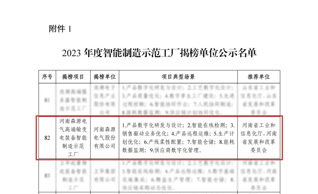 近日,工信部公示了《关于2023年度智能制造示范工厂揭榜单位和优秀场景名单》,公司凭借“河南万搏一站式服务官网电气高端输变电装备智能制造示范工厂”项目成功入选2023年度智能制造示范工厂揭榜单位。