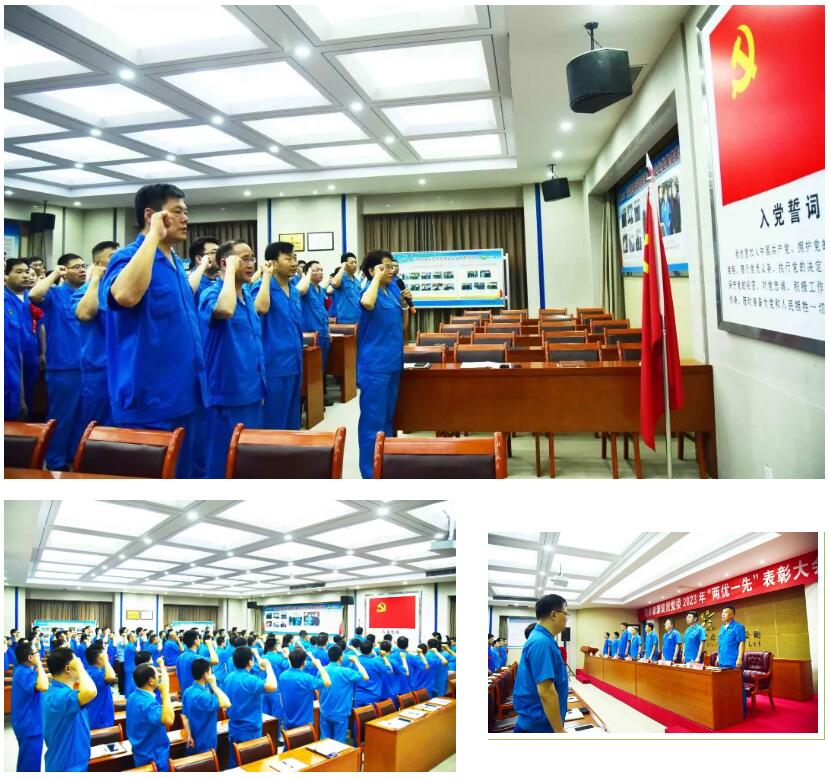 受到表彰的优秀共产党员和先进基层党支部代表登台发言,表示要在以后的工作中用奋斗来坚守誓言、践行承诺,在新时代、新征程中为公司发展增光添彩。