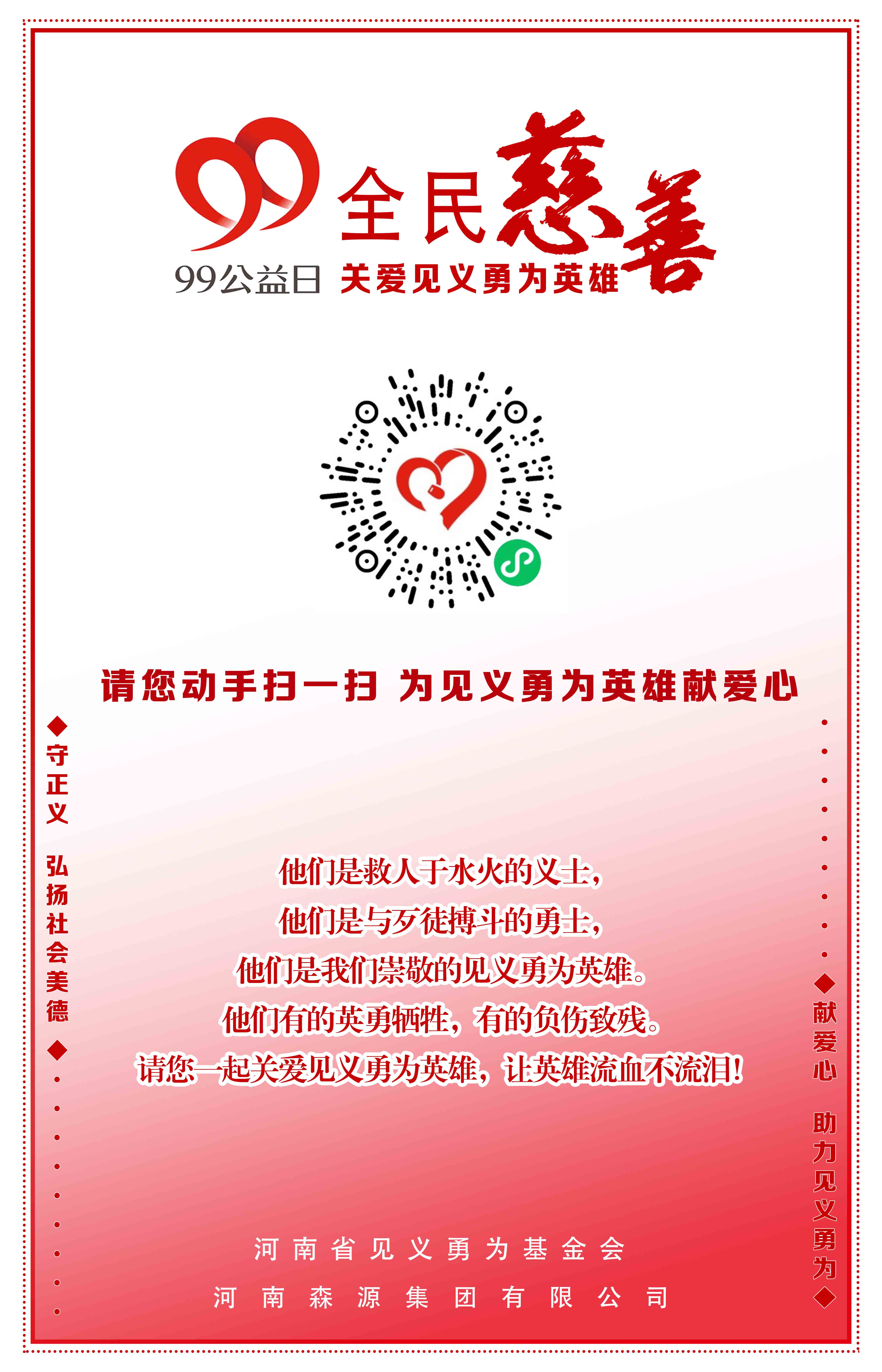 9月5日是中华慈善日,“99公益日”是腾讯公司响应国家中华慈善日号召开展的网上募捐活动,是全国性、全民性慈善活动之一。河南省见义勇为基金会积极参与和组织开展这次活动,万搏一站式服务官网集团是河南省见义勇为基金会理事单位之一;响应国家号召,支持公益,传播社会正能量,万搏一站式服务官网集团积极参加“99公益日”助力见义勇为爱心捐赠活动。