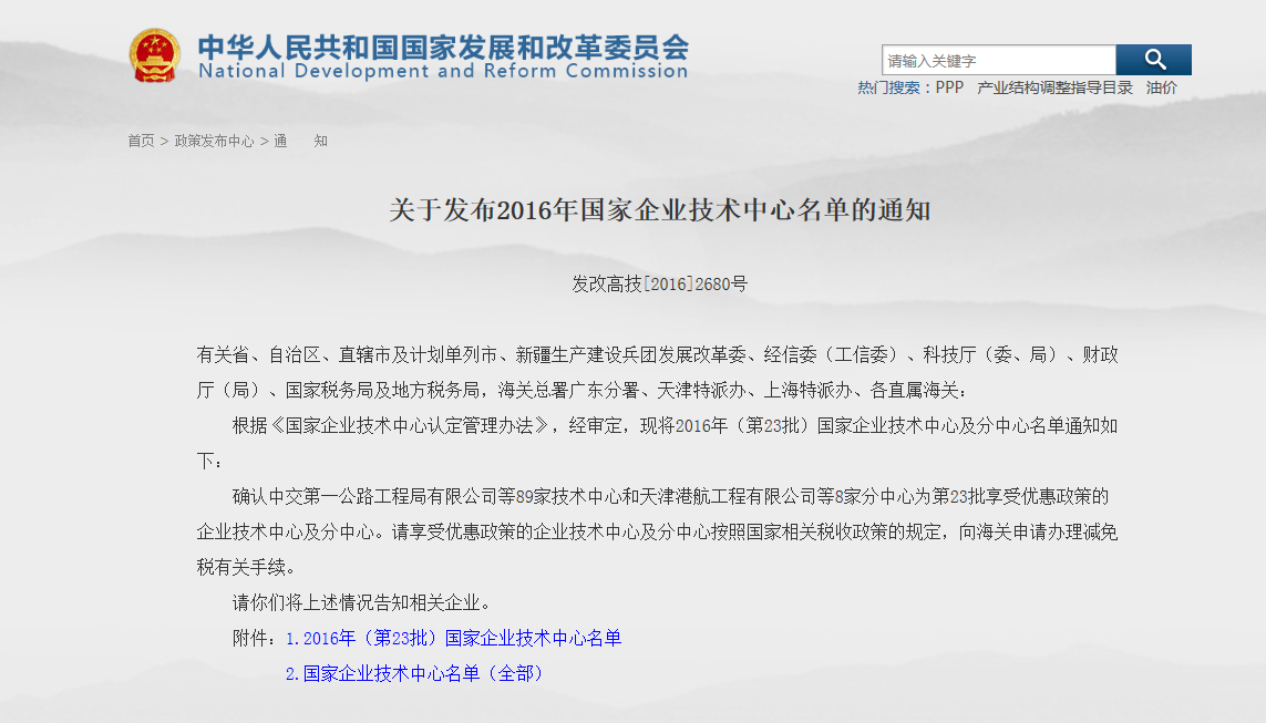根据中华人民共和国国家发展和改革委员会、中华人民共和国科学技术部、中华人民共和国财政部、中华人民共和国海关总署、国家税务总局联合下发的《关于发布2016年国家企业技术中心名单的通知》(发改高技[2016]2680号),河南万搏一站式服务官网集团旗下万搏一站式服务官网电气技术中心被认定为2016年(第23批)国家企业技术中心。