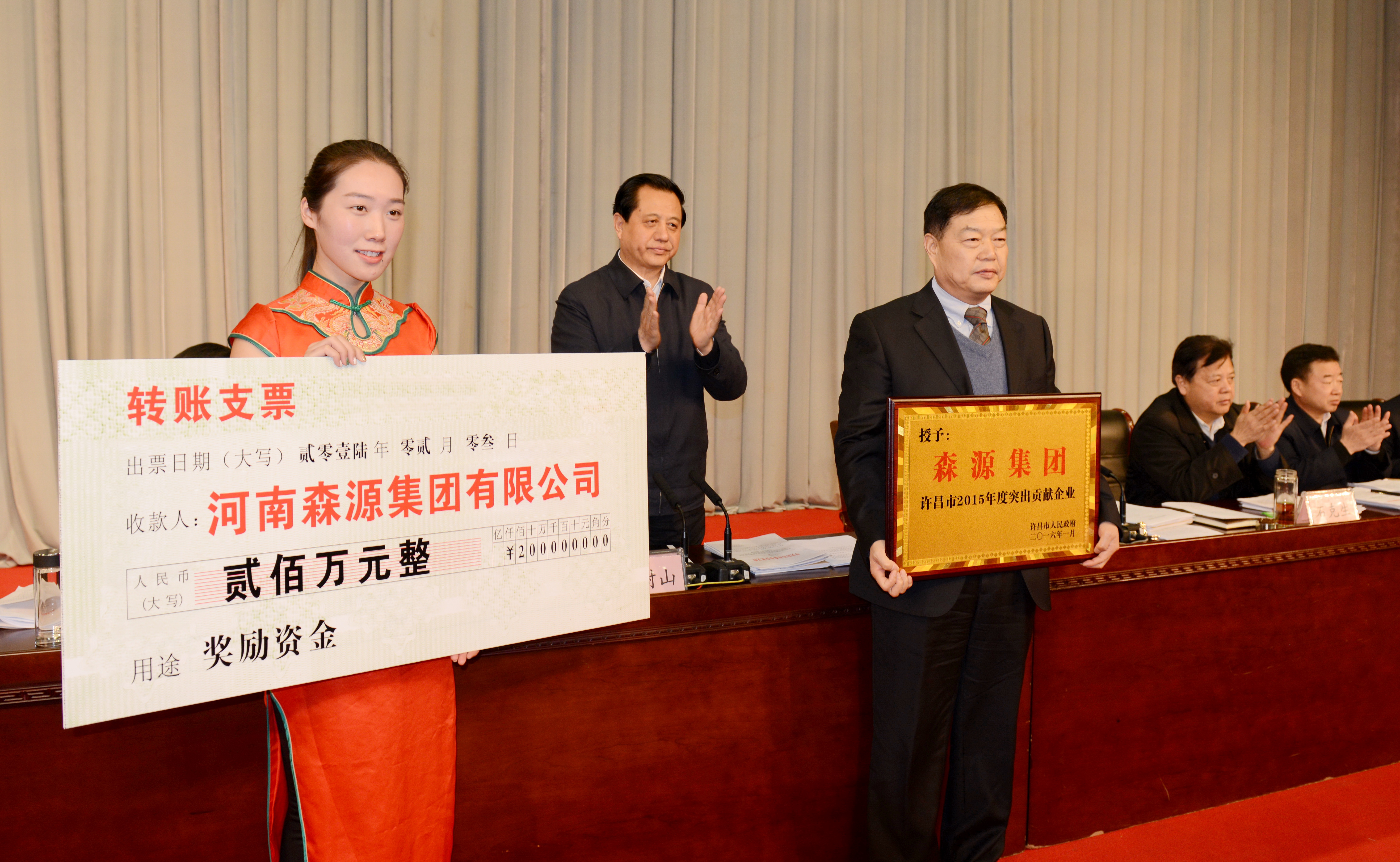 万搏一站式服务官网集团荣获许昌市人民政府2015年工业突出贡献奖。