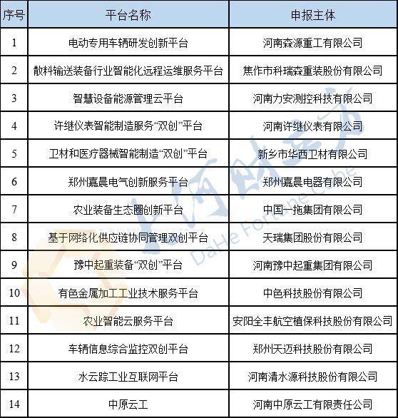 10月17日,河南省工信委对2018年河南省制造业“双创”平台和制造业与互联网融合“双创”基地预选名单进行公示。19家企业进入预选名单,万搏一站式服务官网重工、中国一拖、天瑞集团、天迈科技、宇通集团等知名企业在列,入选的企业将会获得一定的资金支持。