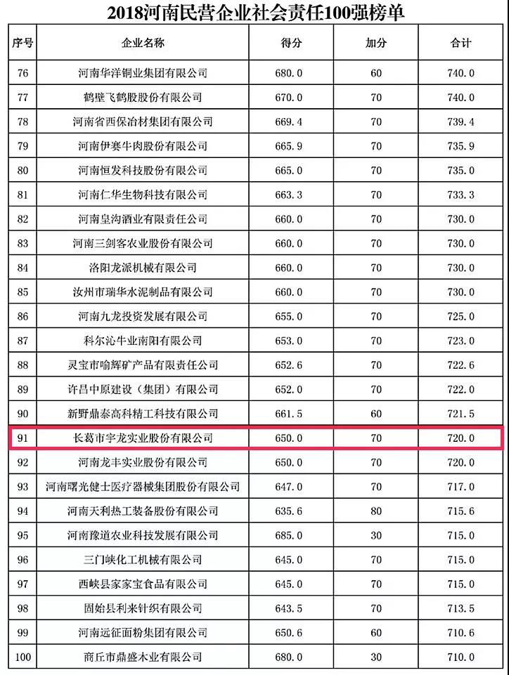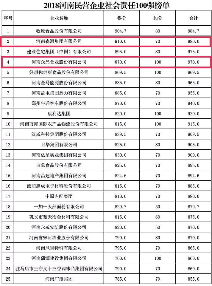 在2018“河南民营企业社会责任100强”榜单中,万搏一站式服务官网集团、众品食业和宇龙实业分别排在第2名、第4名及第91名;